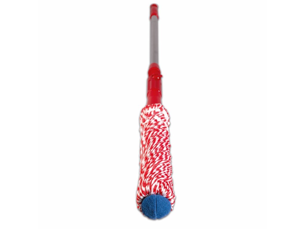 Výsuvný systém tyčí z nerezové oceli se 100% měkkým mopem z mikrovlákna. Mop se ždímá otáčením rukojeti a nepotřebuje ždímač.